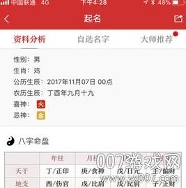 2. 八字五行,周全考量:APP能够综合分析宝宝的生辰八字、五行喜用、三才五格、生肖喜忌以及字形字义等,进行多角度的起名评估。