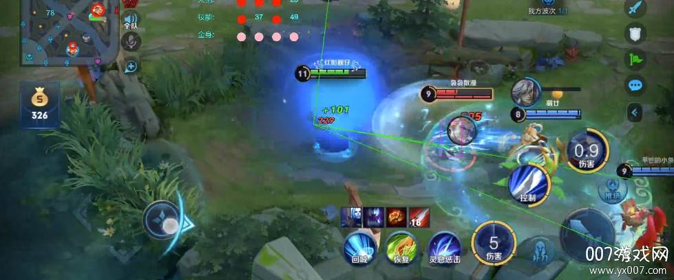- 人物绘制 – 回程状态(敌方回程时会有蓝圈特效/圈内血量显示):当敌方英雄选择回城时,会有醒目的蓝色光圈提示,并且光圈内会显示其剩余血量,让你能够判断是否进行追击,或是将其拦截在泉水之前。