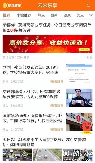 打开应用,选择您感兴趣的文章资讯进行阅读。每日完成一定阅读量后,即可领取相应的任务奖励。您还可以将文章分享至社交平台,好友点击阅读后,您便能获得佣金收益。