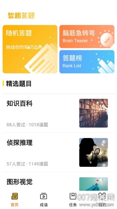 - 自选题库: 无论是知识百科、脑筋急转弯,还是推理侦探,总有你喜欢的题型。
