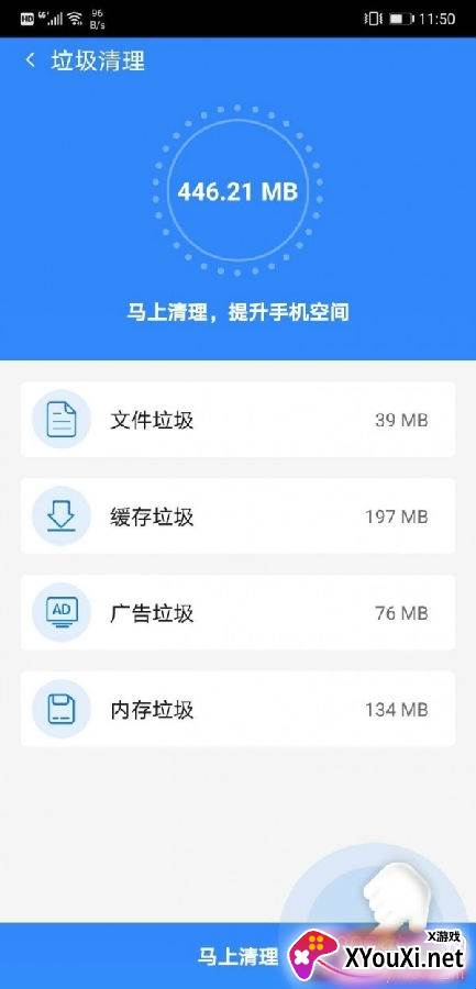 3. 一步到位,高效清理,只需一次操作,即可同时清理文件、缓存、内存及广告等各类垃圾,效率非凡。