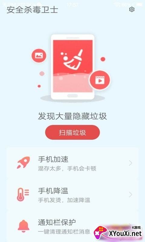 安全杀毒卫士app一键清理版,让手机焕然一新: