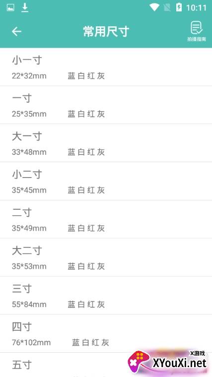 4. 证件照功能提供多种规格选择,按需选择尺寸后即可拍摄制作。