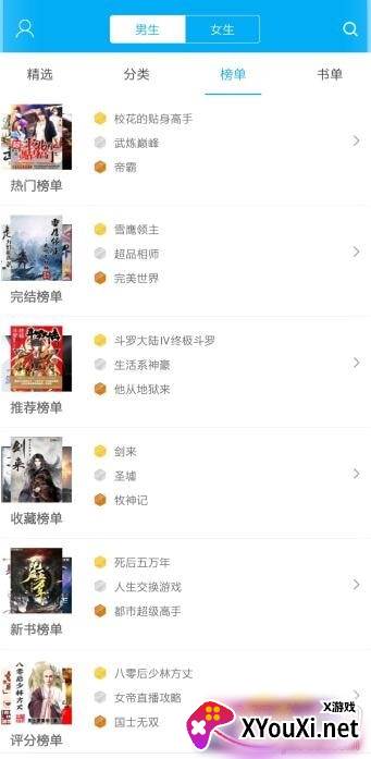 4、精选内容,男生、女生、完结、榜单,大神推荐,源源不断的好书,只怕您看不完!