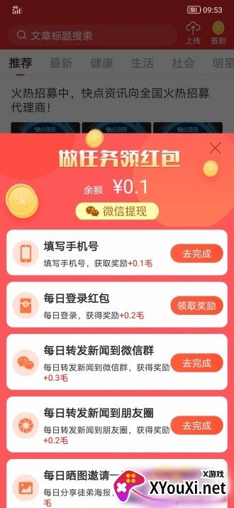 点心资讯现金红包版是一款新颖的手机网赚应用,用户可以通过阅读和分享文章来轻松获利。平台每日更新海量资讯,内容丰富多样,覆盖各类感兴趣的话题。只需选择心仪的文章进行阅读和转发,即可获得收益。此外,平台还设有各类任务,完成任务可赚取丰厚奖励。
