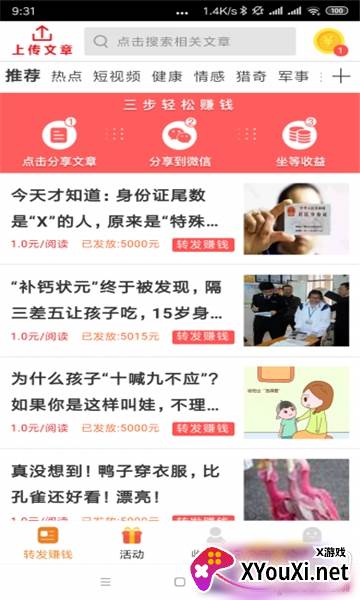 1、诚信为本,实力认证!这是一款靠谱的手机赚钱APP,转发新闻就能轻松赚取现金,无需任何投资。注册即送红包,更有文章上传功能,让你内容变现两不误!