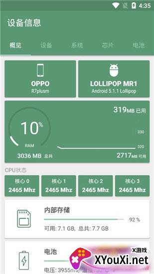 - 概览: 一站式呈现手机设备、系统、CPU、电池、内部存储等核心概况。