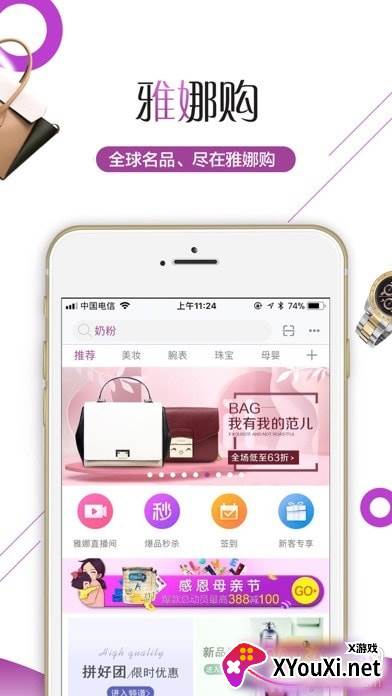 从进口奶粉、食品,到珠宝首饰、名表箱包,再到各类美妆护肤品,雅娜购App品类齐全,应有尽有,满足您对高品质生活的一切想象。