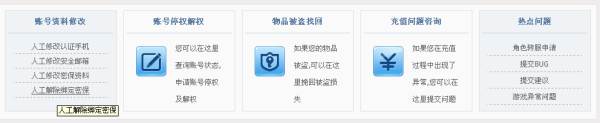 2. 您也可以登录游戏官网,进入“客服中心”,登陆您的通行证账号。将鼠标悬停在“账号资料修改”一栏,如图所示: