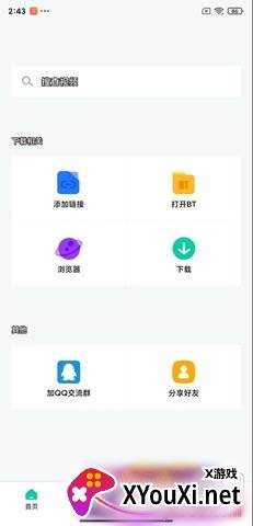 打开首页,您会发现该软件支持BT种子、迅雷、电驴以及磁力链接等多种格式的资源解析与下载。