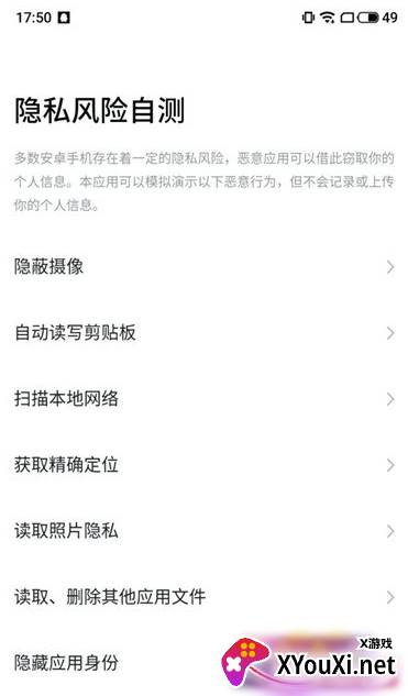 为手机提供一种便捷高效的隐私防护检测方式,这款工具如同一位经验丰富的“体检师”,只需遵循指引,激活手机自身的安全功能,便能轻松评估手机的隐私防护能力。安全专家们深谙Android手机的特性,精心设计了一套标准化的验证流程,无论在何种品牌的安卓手机上运行,都能呈现出客观且专业的检测结果。
