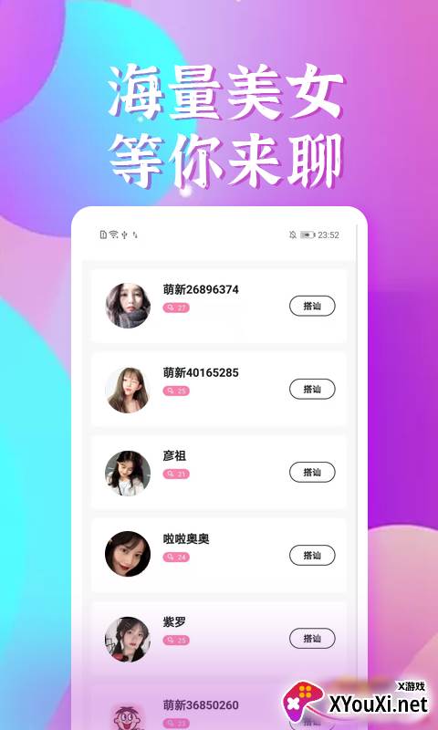 2. **趣味相投,从这里开始:** 遇见有趣、好玩的人,不再是遥不可及的梦想。海量美女等你来撩,让你的生活从此充满色彩。