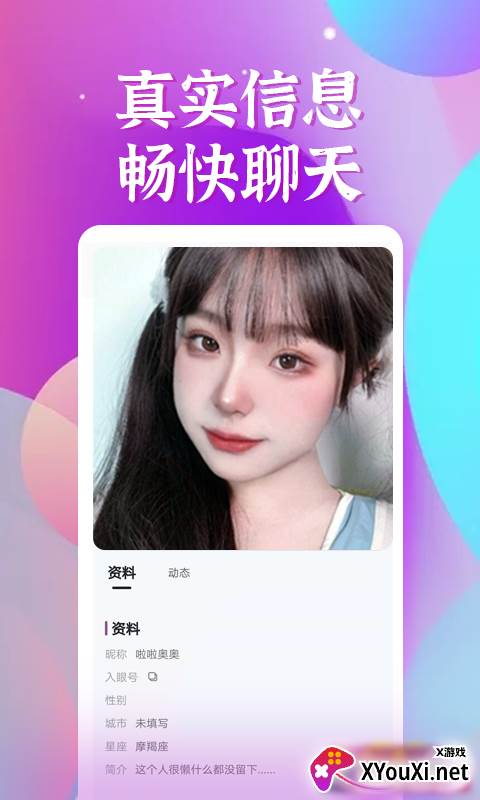 想打破社交壁垒,拓展朋友圈?全新上线的“入眼”APP,为你打开一扇通往广阔社交世界的大门。在这里,汇聚了海量高颜值俊男靓女,无论何时,都能与他们畅快互动。我们郑重承诺,平台用户信息真实可靠,让你安心享受交友的乐趣。更有丰富多样的互动玩法等你来探索,快来下载,开启你的精彩社交之旅吧!
