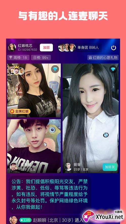 – **视频交友,真人秀场:** 拒绝“照骗”,我们对每一位用户的身份信息进行严格认证,打造真实的社交网络服务。