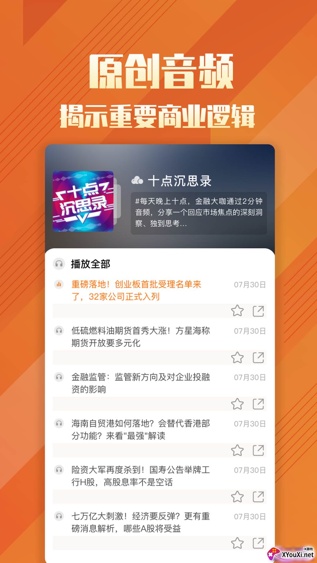 2. **《十点沉思录》**:每晚十点,特邀金融大咖献声,用2分钟的音频分享对市场焦点的深刻洞察和独到思考。