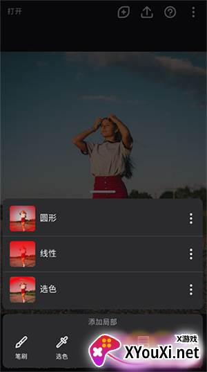 2. 在局部编辑界面,您可以选择圆形、线性或选色等多种选区类型。根据您的具体需求进行选择,本例以“圆形”选区为例。