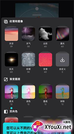 4. 为了进一步提升图片的艺术表现力,您可以添加纹理、图像、图层以及双色调等多种效果。