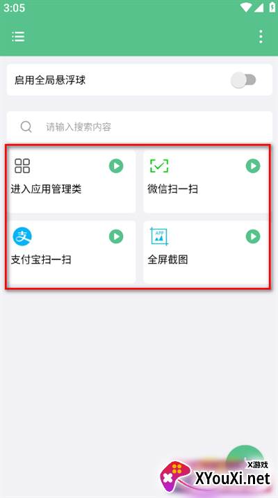- 初次打开APP,你会看到微信扫一扫、支付宝扫一扫、全屏截图等预设指令,一目了然。