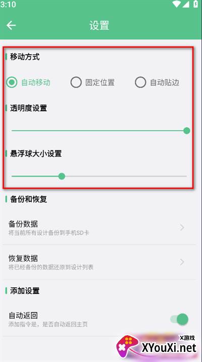- 在这里,你可以根据个人喜好,随心调整悬浮球的各项参数,打造独一无二的操作体验。