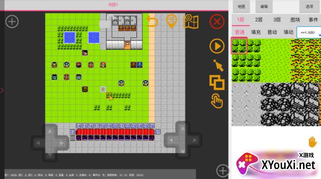 5. 选中图块后,再次轻点即可在地图上绘制;亦可双击未选中的区域快速绘制。请注意,双击已选中的区域会绘制两次。