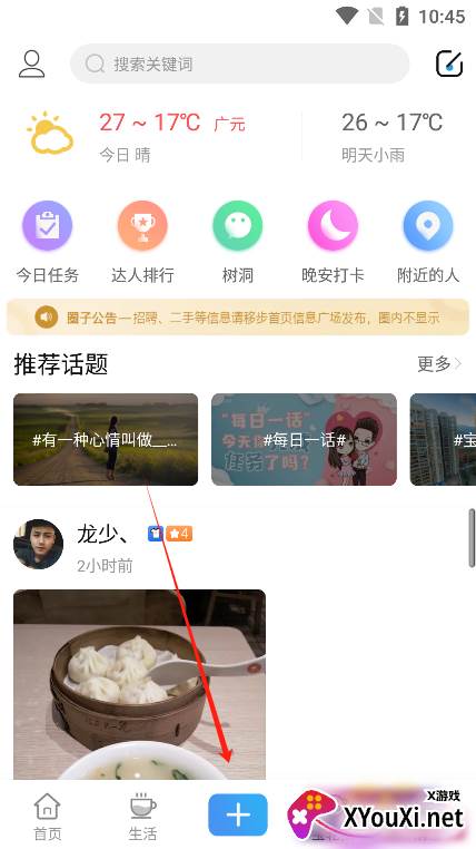 4. 点击“圈子”中的加号,即可轻松发布您的精彩动态。