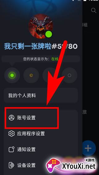 3. 在弹出的菜单中,选择“账号设置”。