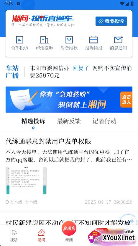 4. 在“湘问”板块,找到“投诉直通车”,所有疑难杂症,均可在线一键投诉。