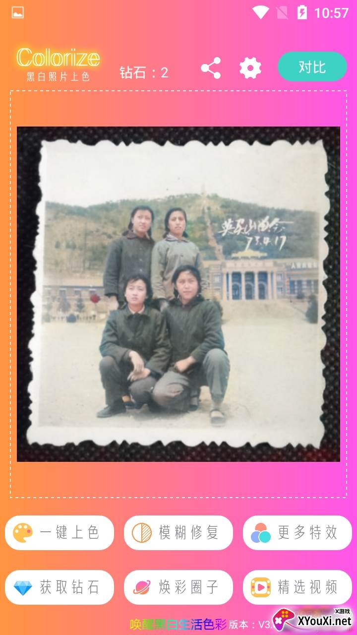 “上色老照片完美修复版”的特色在于其极致的简便性与出色的效果。它能够智能识别黑白图片中的物体,并根据识别结果推荐最适合的颜色进行着色,例如识别出大海便会填充蓝色。这种智能上色过程,边缘过渡精细到像素级别,使得上色后的物体边缘更加自然,同时还能提升清晰度。整个操作过程极为简单,只需一键完成,无需任何专业P图技能,几秒钟内即可获得令人惊喜的上色效果。
