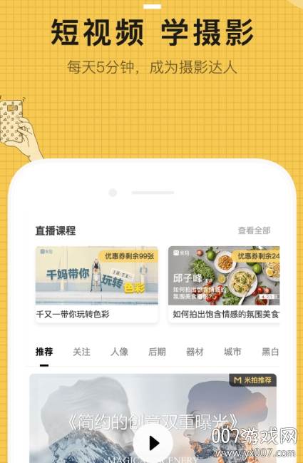 行业大咖倾囊相授,摄影系列课程应有尽有。短视频教学,干货满满,打造你的线上摄影教育殿堂。