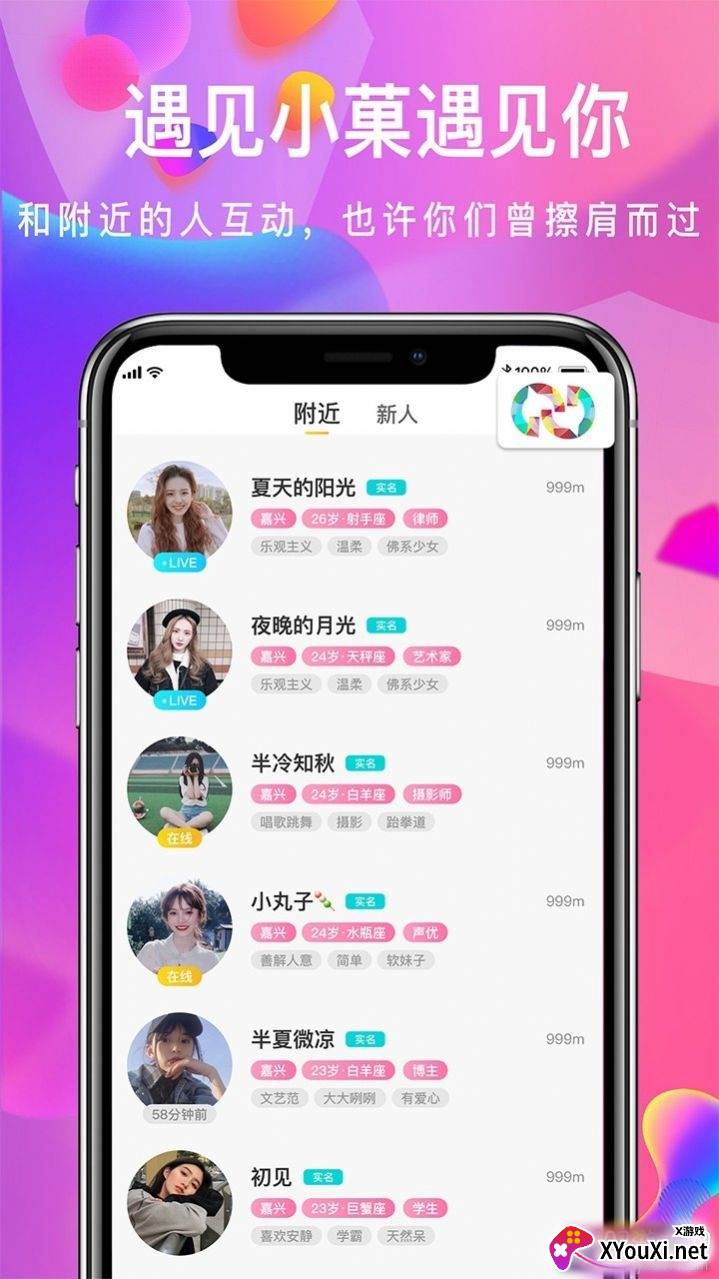 4. 无论是与附近的朋友互动,还是与远方的陌生人畅聊,小菓都能提供一个安全、高效的在线交友平台,让每一次互动都充满惊喜与温暖。