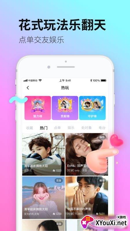 还在为游戏开黑找不到队友而烦恼吗?“有你语音”APP在线开黑版,专为游戏玩家打造的集结地,让你告别孤军奋战!在这里,你可以轻松邂逅各路游戏大神,畅聊游戏心得,更能随时随地约战开黑,纵享极致游戏快感。悄悄告诉你,这里还有不少声音甜美的小姐姐等你来撩哦!