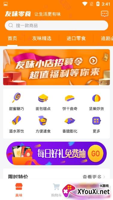 友味零食App,汇聚海量零食,专为吃货打造。随时随地,开启你的零食探索之旅,丰富的促销活动,让你惊喜不断,美味不停!
