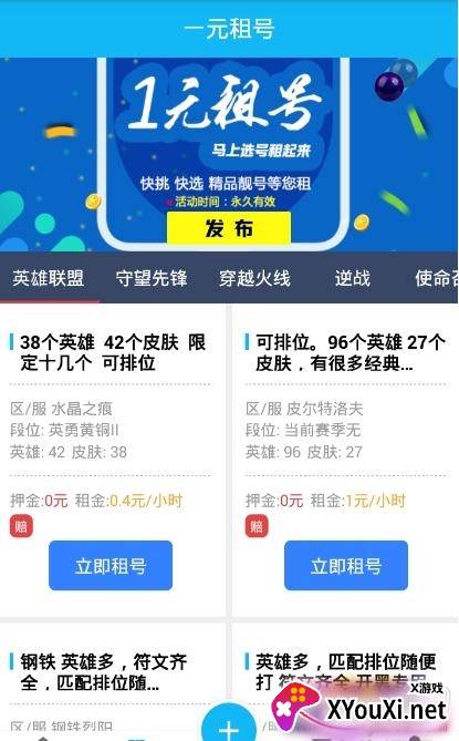 2、一元畅玩,开启新篇:仅需一元,即可租用到心仪的游戏账号,立即开启您的精彩游戏征程,探索未知,挑战极限。