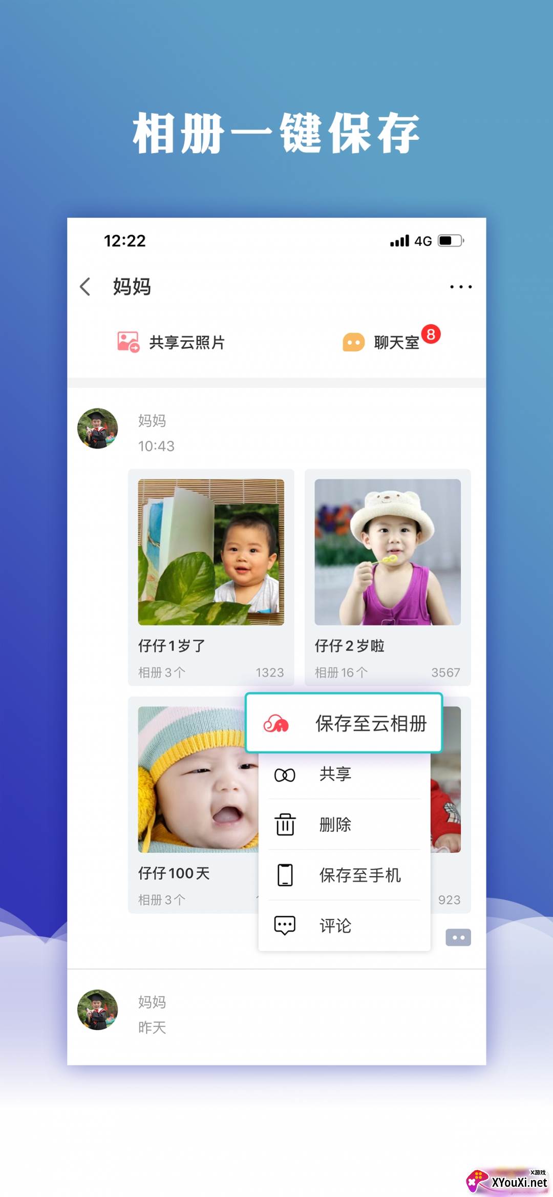 4. 互动评论,乐趣倍增: 您可以自由评论他人的相册,亦可将心仪的照片保存至您的云相册,让分享与互动充满乐趣。