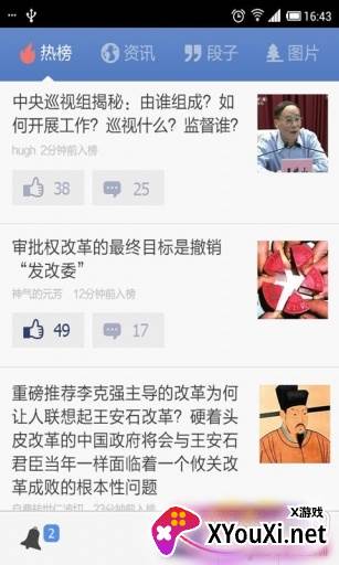 “抽屉新热榜”是一款主打趣味资讯的手机应用,它精准捕捉用户的猎奇心理,汇聚了各种有趣的资讯、段子、评论和图片,并分享给广大网友。与网易、搜狐、新浪等传统门户客户端相比,“抽屉”的内容更显新颖别致,独具一格。