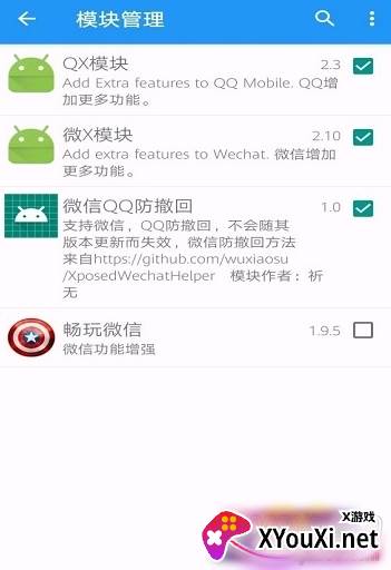 - 再次打开“太极”,进入“模块管理”,勾选“微X模块”,然后重启“太极”应用。