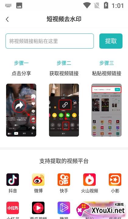 4. **视频无痕提取:** 告别水印干扰,一键复制链接,即可提取纯净无水印视频。