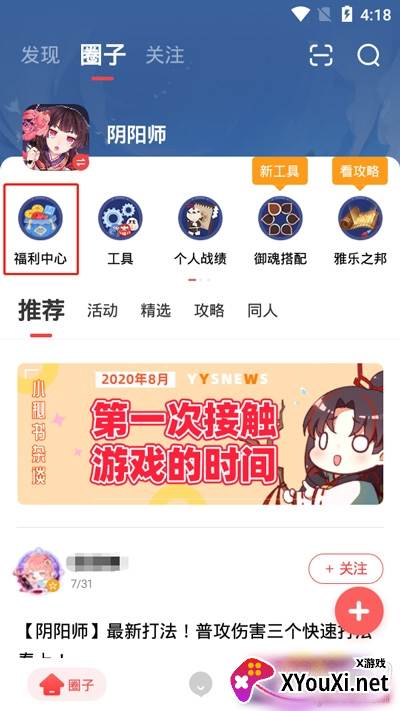2. 切换至游戏圈子后,在圈子头像下方,你会看到“福利中心”的入口。点击它,即可进入该游戏的专属福利页面。每个游戏的福利中心,都可以在这个位置找到。