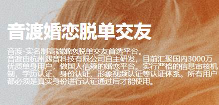 音渡大龄相亲——一个真实、靠谱的同城婚恋约会交友平台,让每一份真情都能找到归宿。