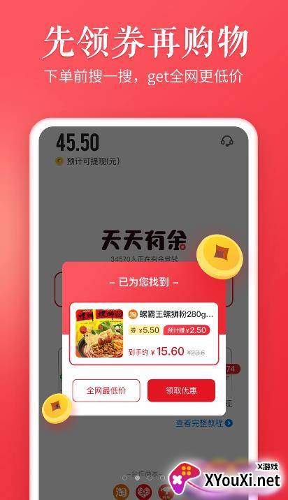 –便捷操作,快速返利: 只需复制商品名称或链接,即可在“有余”平台领取专属优惠,下单后静待返现。
