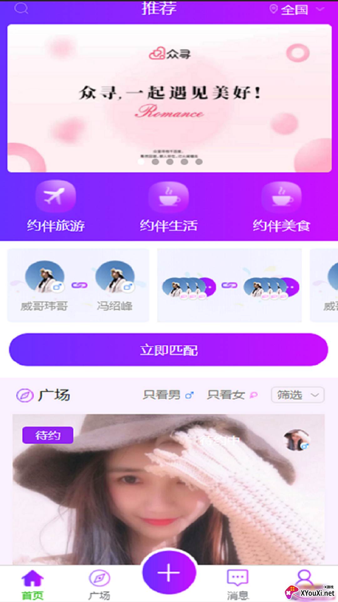 众寻交友app:一款匠心独运的手机社交神器,汇聚了海量优质用户,并提供多元化的互动模式,全方位满足您随时随地的社交需求。只需轻点“同城交友”,即可轻松邂逅您身边的有缘人,无论是组队开黑还是倾心畅聊,众寻都能为您实现。心动不如行动,即刻下载体验吧!