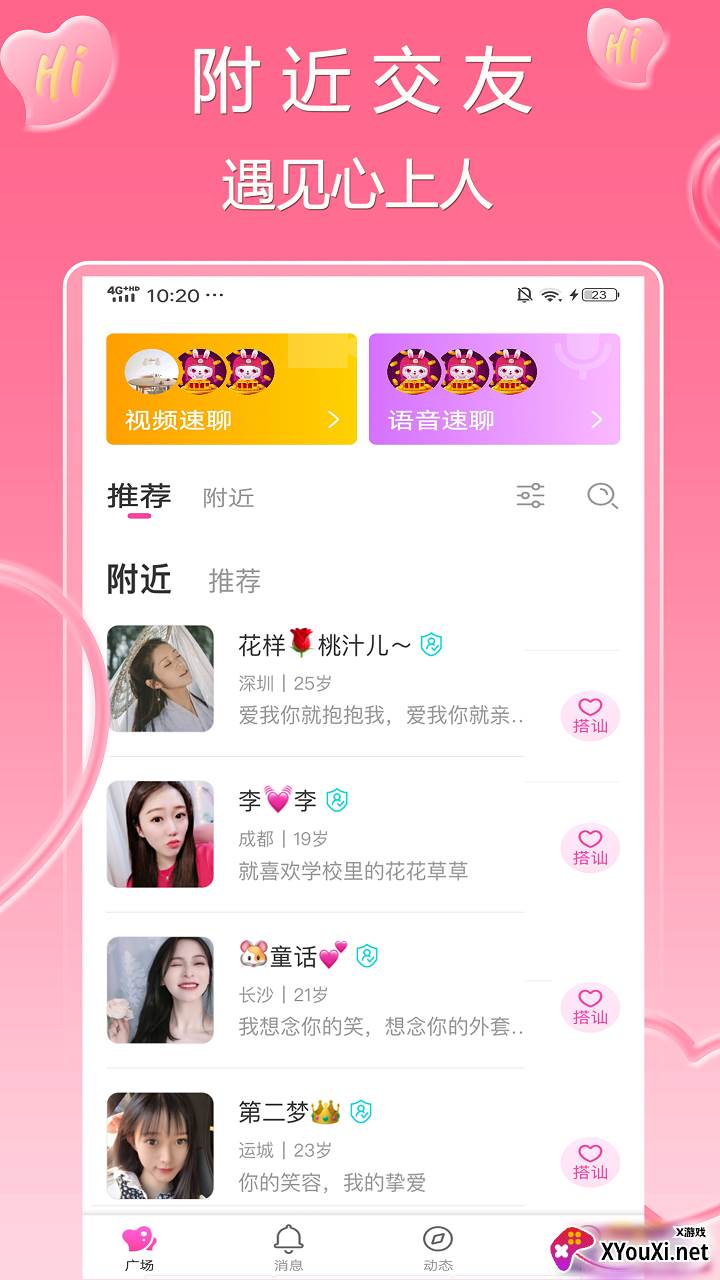 - 附近交友: 轻松发现您身边的单身男女,近距离的缘分,让心动触手可及,约会更便捷。