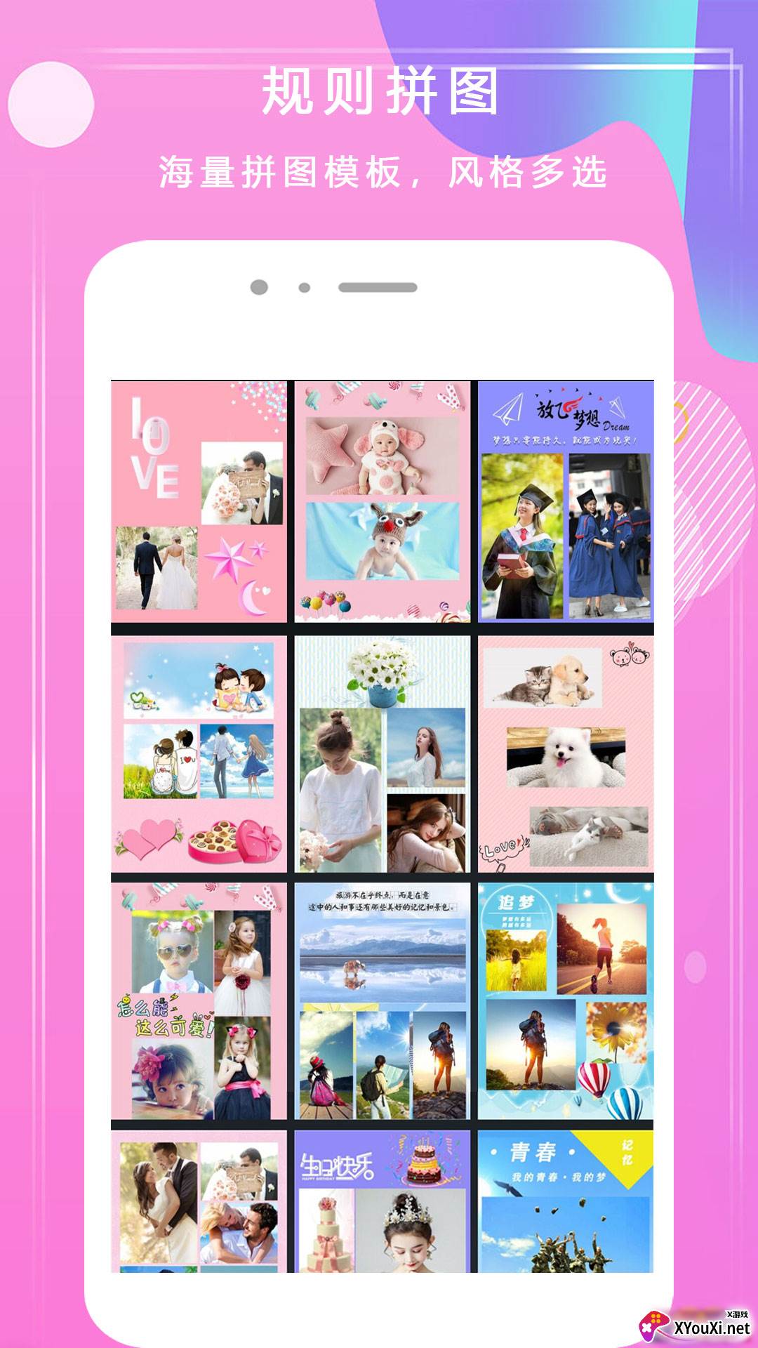 这是一款集美颜与创意于一体的拍照利器。它不仅能让你轻松拍出时尚大片,还能捕捉生活中的趣味瞬间。无论是常规拼图、别致特拼、创意背景拼图还是线条拼图,都能让你随心所欲,打造专属的海报级视觉效果。强大的P图功能涵盖滤镜、贴纸、水印遮罩、剪切编辑等,多风格滤镜赋予照片高级质感,趣味贴纸瞬间提升吸睛度。