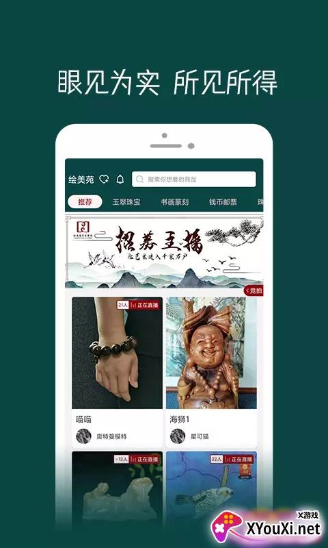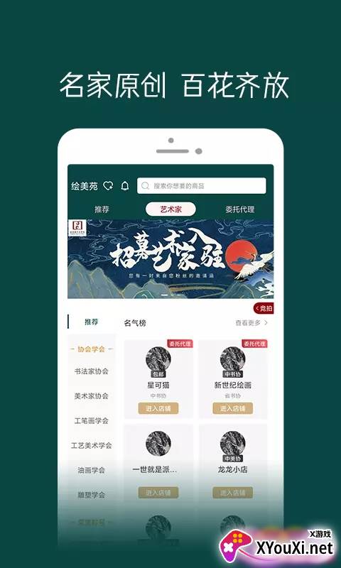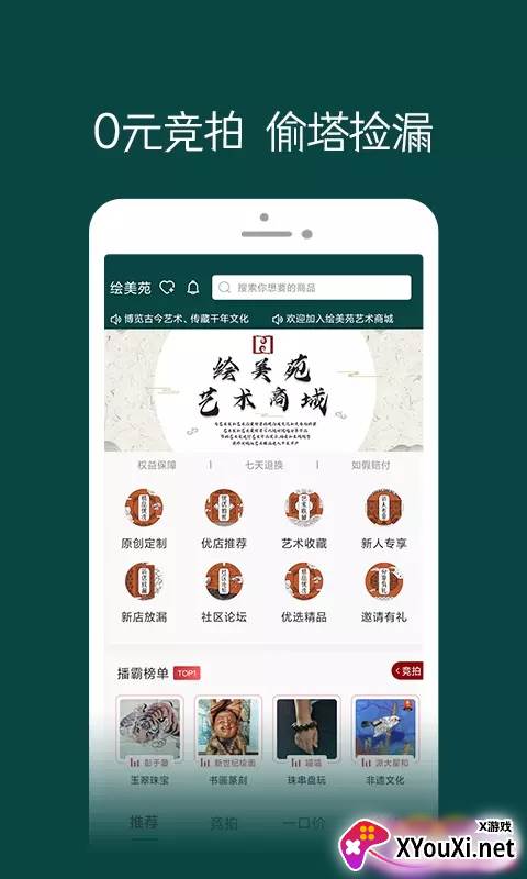 由东莞市珍艺苑文化传播有限公司倾力打造的“绘美苑艺术商城”App,是一款以艺术品为核心,融合文玩、工艺品、奢侈品等多元品类的移动互联网交易平台。我们肩负着传播与弘扬中华文化的使命,致力于为艺术家与艺术品爱好者搭建一座沟通、交流与交易的桥梁。积极响应国家“坚持民族文化自信”的号召,为推动中华文化事业的繁荣发展贡献力量!