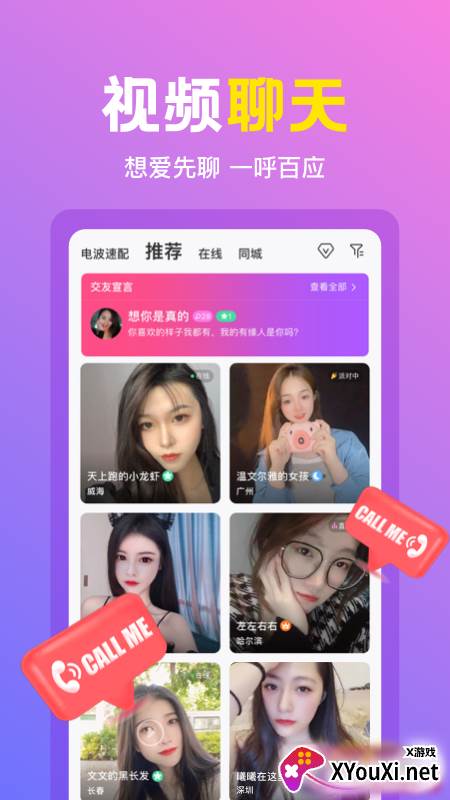 - 精准匹配,心意相通: 我们的智能匹配系统,会根据你的偏好为你推荐用户,让每一次的遇见都充满惊喜,交流更加顺畅无阻。