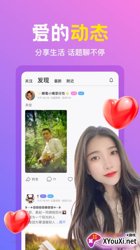 - 生活分享,魅力绽放: 在这里,你可以自由分享生活的点滴,发布动态,让更多人了解你的精彩,吸引更多主动的目光。