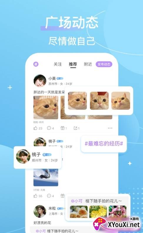 2. **动态广场,掌握信息:** 在广场中浏览好友的动态,了解彼此的生活点滴,让沟通更加顺畅。