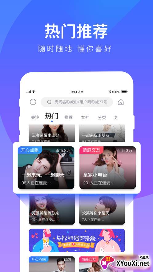3. 广播大厅随心刷: 广播大厅让你随时随地发现心仪的TA,缘分不错过。