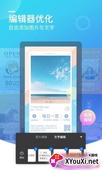 微制作APP是一款功能强大的手机图片后期处理应用。在这里,您可以随心所欲地修改照片,添加各种风格的滤镜,让文字在图片上翩翩起舞,甚至可以实现瘦脸瘦身的神奇效果。更令人惊喜的是,它独创的邀请函、信封、文本和纸张格式模板制作功能,让您在手机上就能轻松生成精美的排版文字。还在等什么?快来下载体验吧!