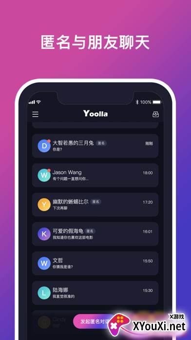 1. 匿名畅聊,熟人新玩法:在 Yoolla,你可以与通讯录中的朋友进行一场别开生面的匿名聊天。你匿名,我实名,话语权在匿名之下,尽情释放。